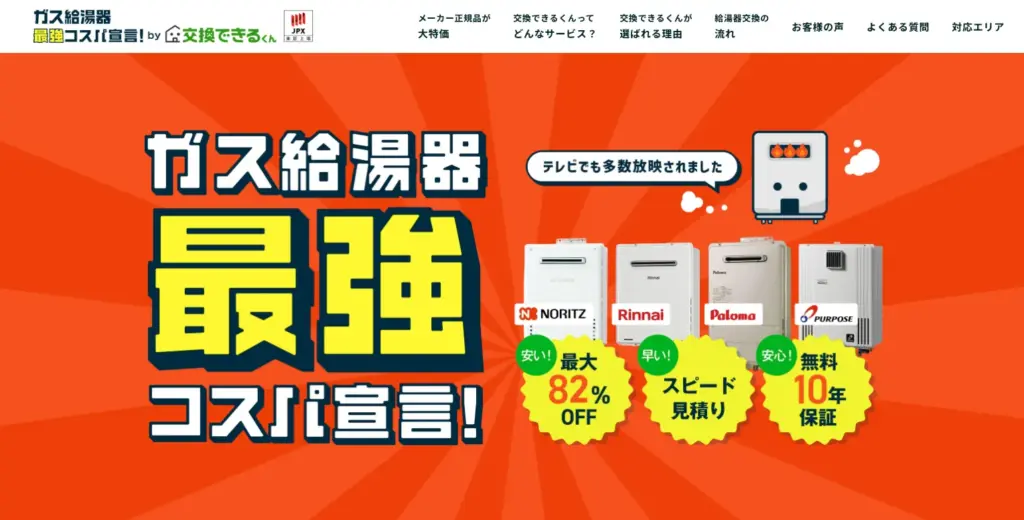 交換できるくんは、株式会社交換できるくんが運営する、給湯器・住宅設備交換の専門サービスです。