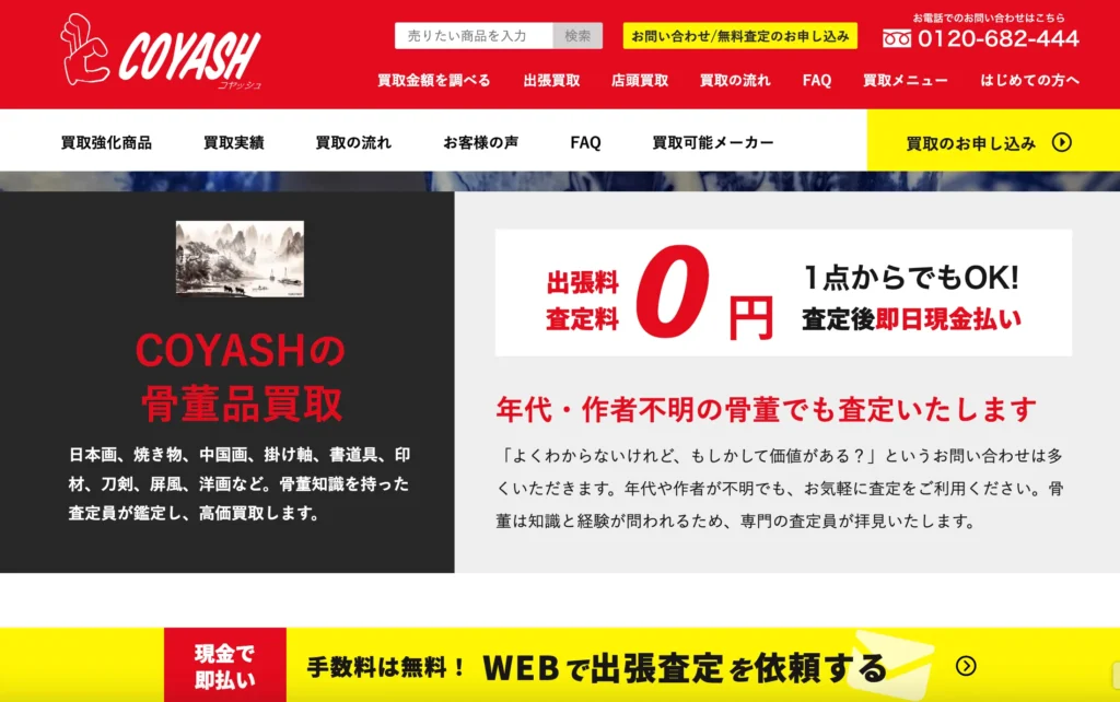COYASHは、出張買取を中心に幅広い骨董品・古美術品を査定・買取してくれる業者です。