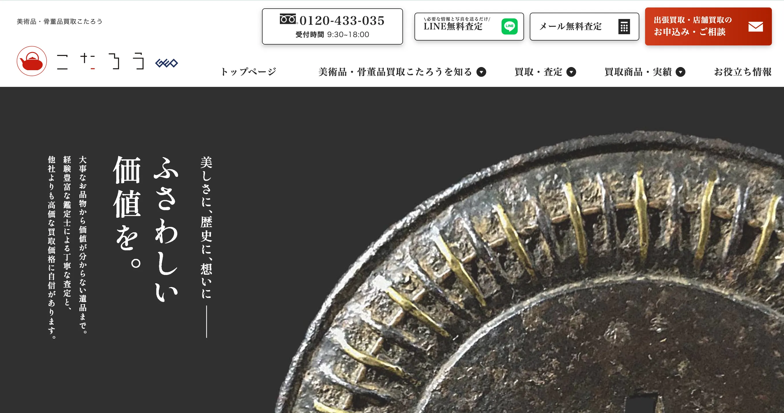 公式サイトに取扱ジャンル(茶道具・掛軸・刀剣・陶磁器など)や買取実績が具体的に掲載されている業者は信頼度が高い傾向があります。