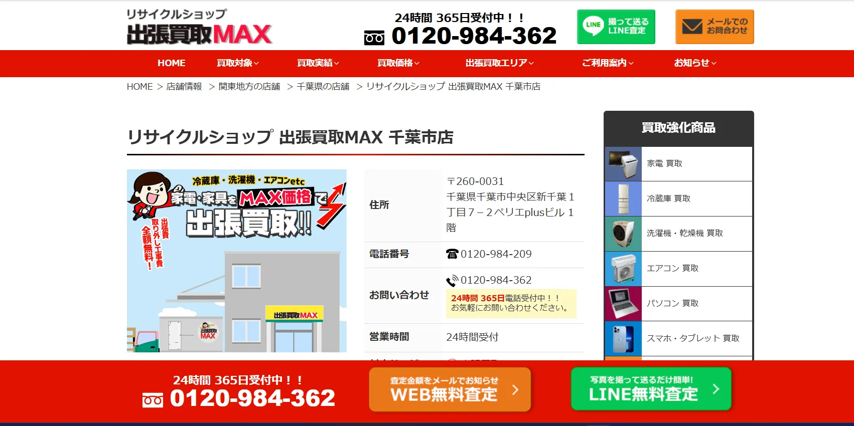 | 買取方法 | 店頭買取(千葉は店舗なし)・出張買取・宅配買取 |