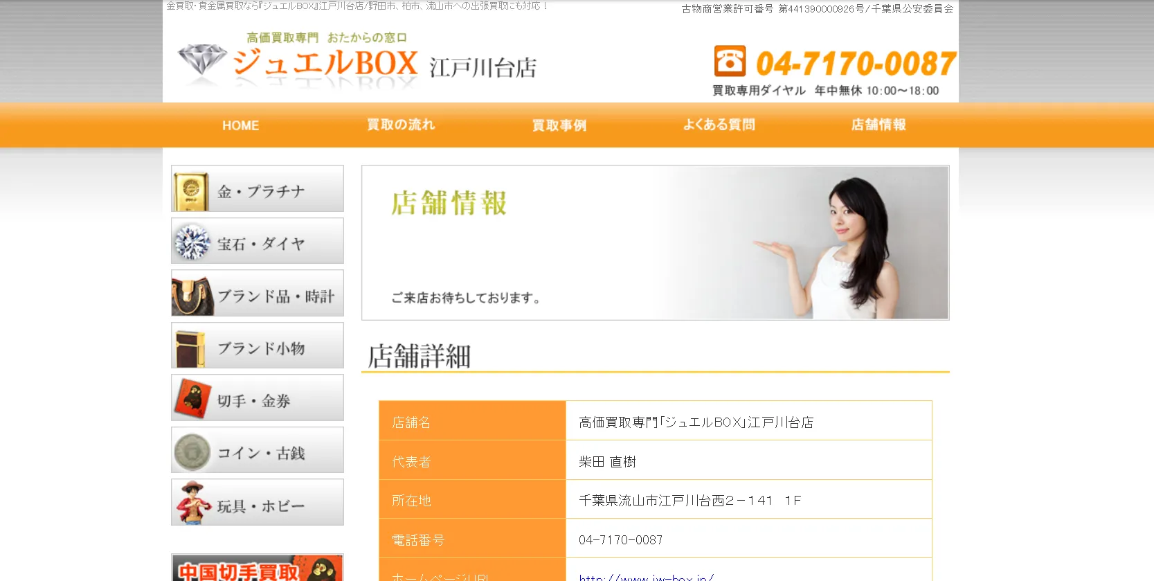高価買取専門「ジュエルBOX」江戸川台店の基本情報