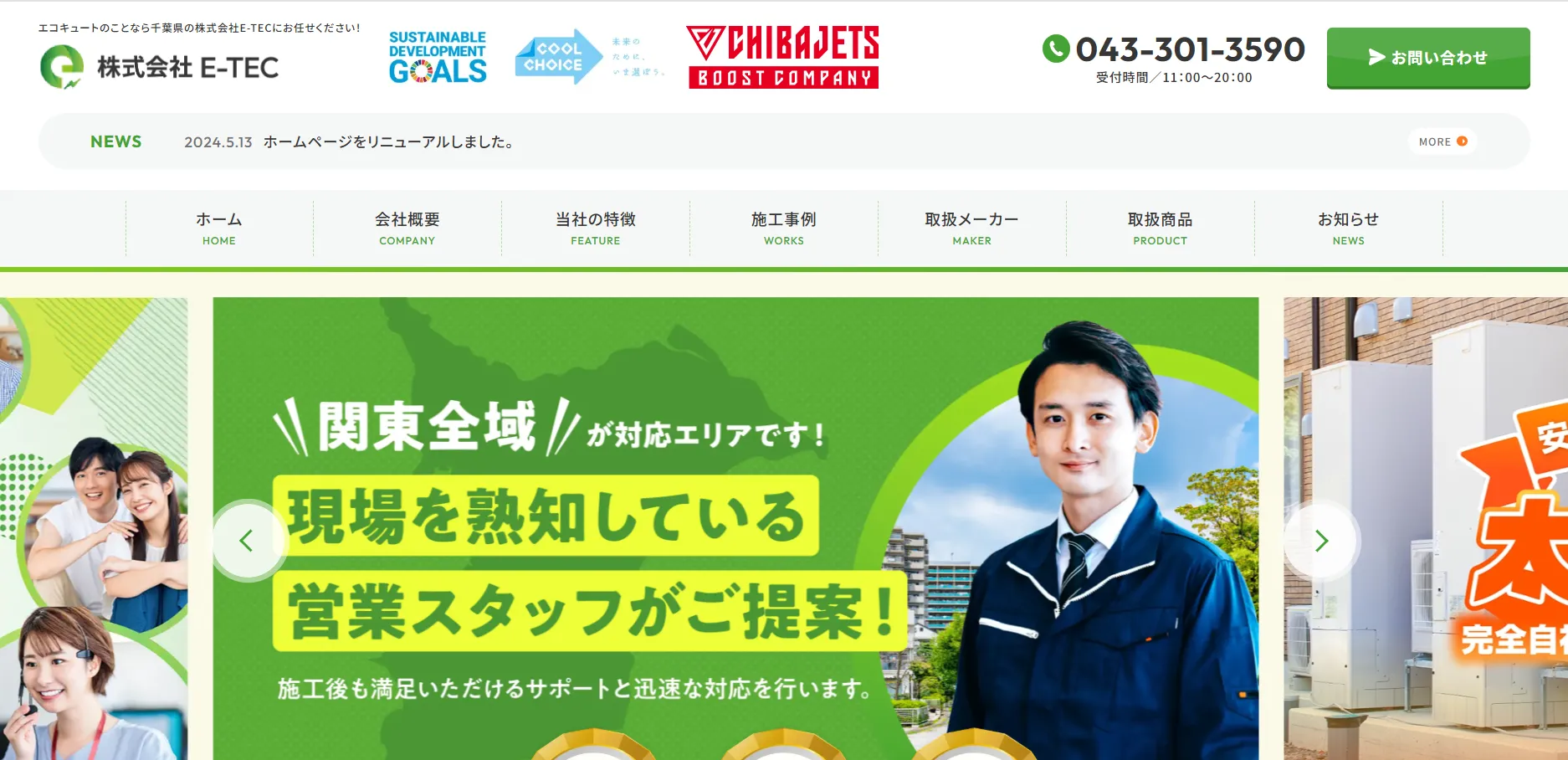 - 千葉市にサービスセンターがあり、対応エリアは千葉県全域