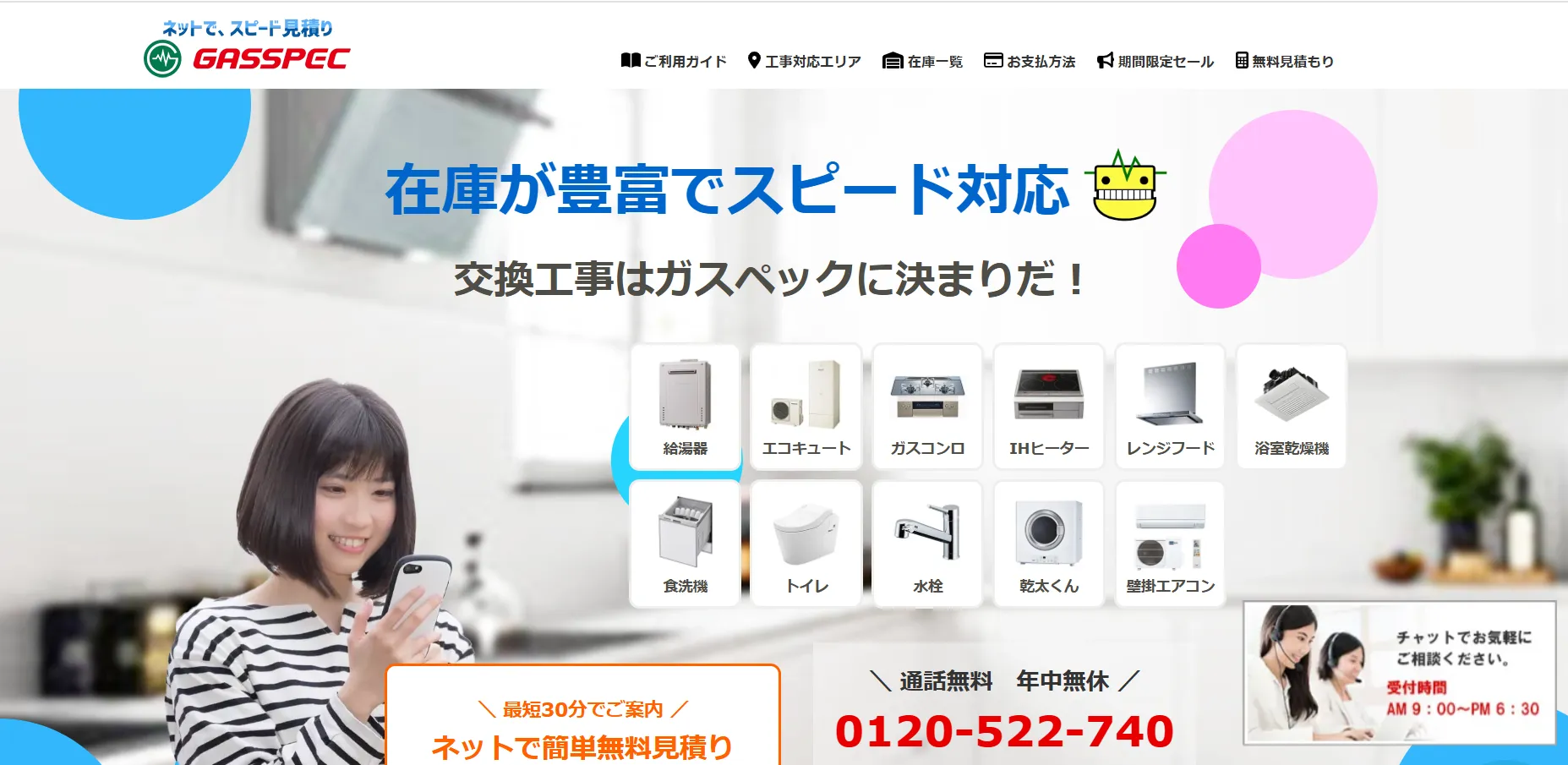 お電話なら最短30分で訪問し、即日施工も可能です。「お湯が出ない」といった緊急時のトラブルでも頼りになります。