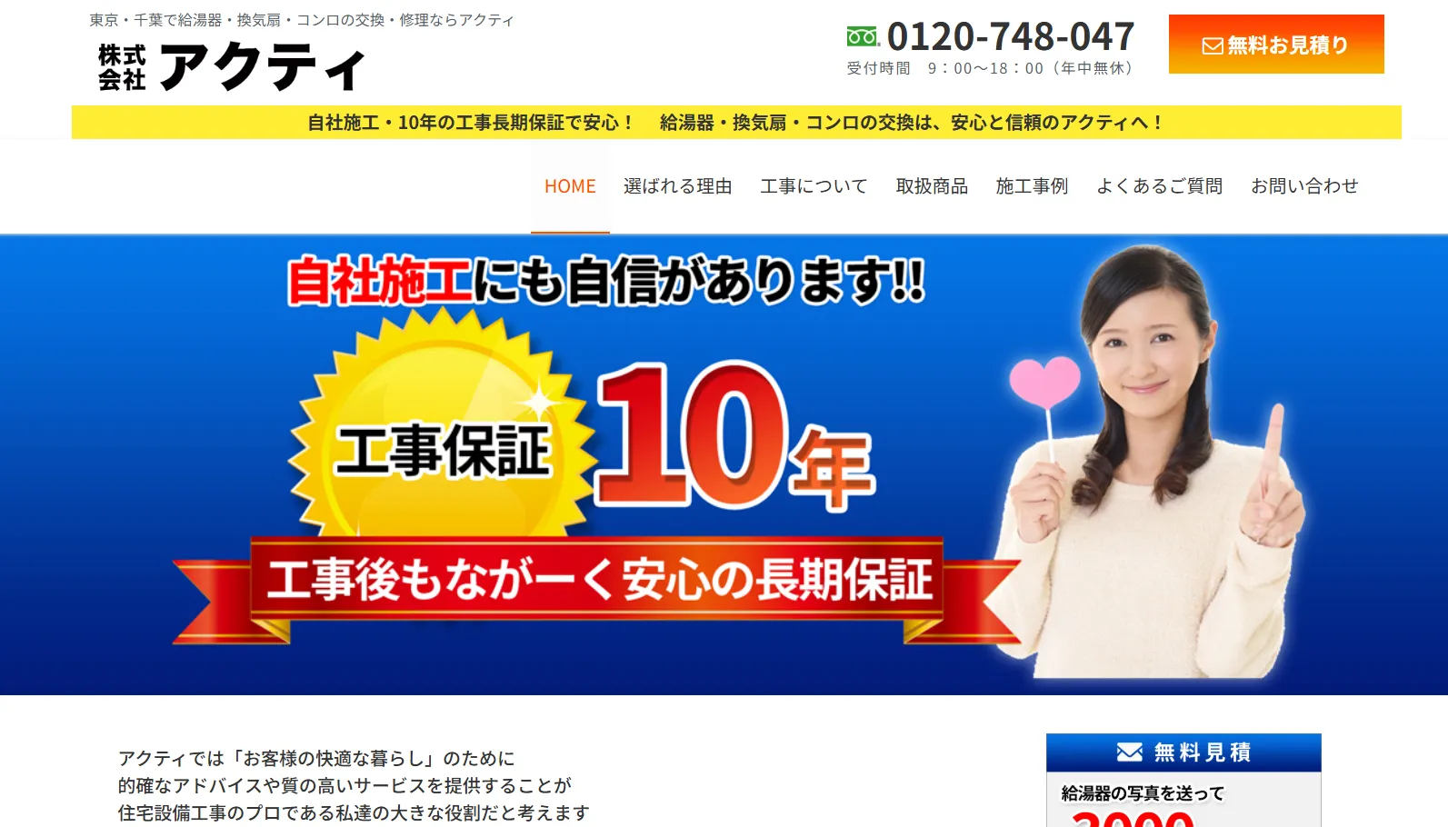 お電話なら最短30分で訪問し、即日施工も可能です。「お湯が出ない」といった緊急時のトラブルでも頼りになります。