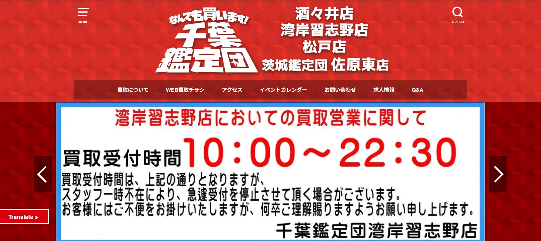 | 営業時間 | 店舗:10:30~18:00(年中無休) 電話申し込み:24時間 |