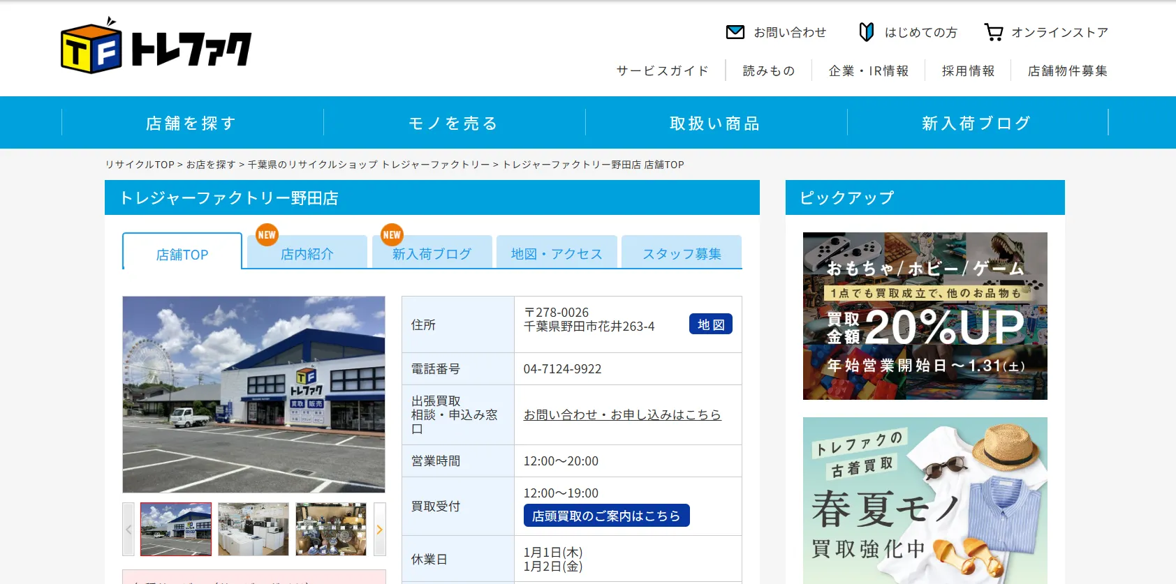 | 営業時間 | 店舗:10:30~18:00(年中無休) 電話申し込み:24時間 |