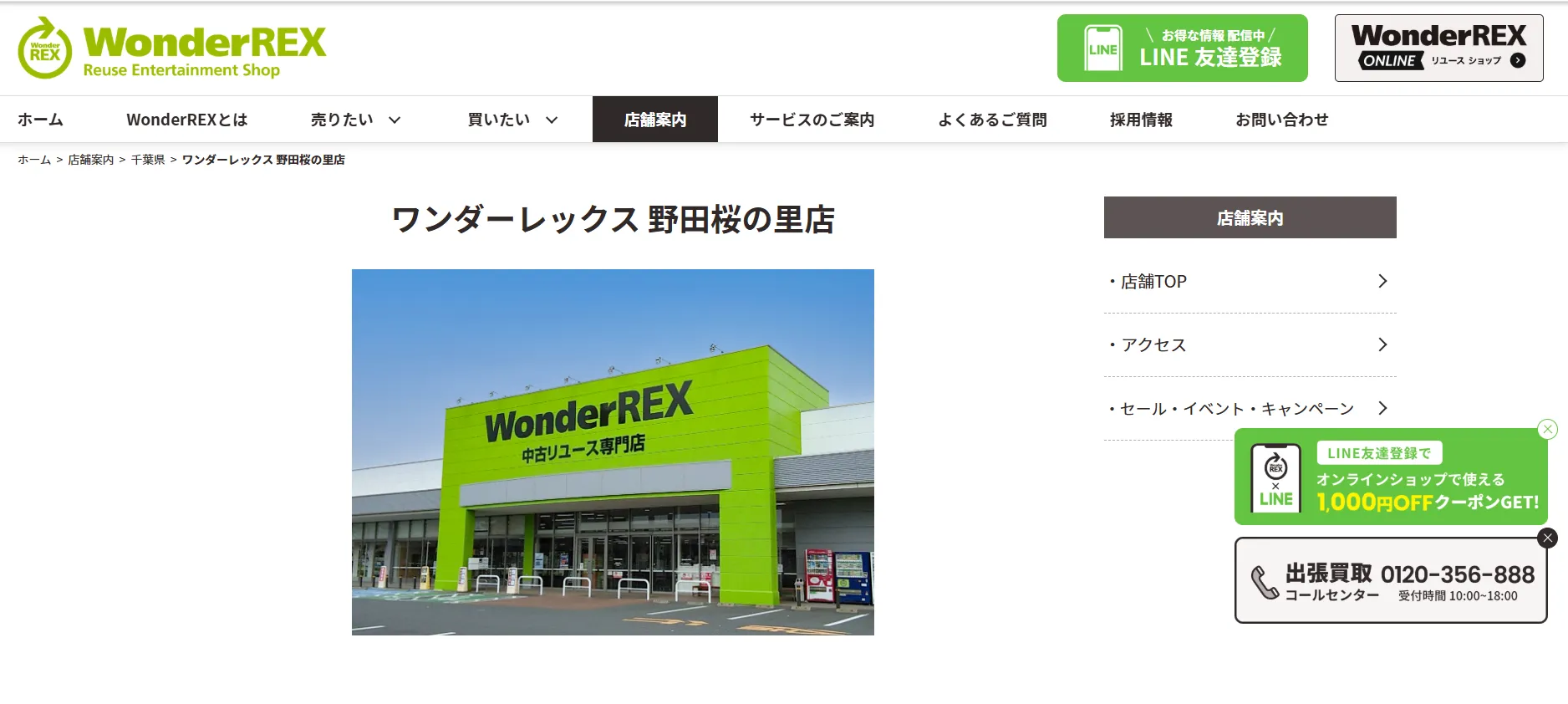 | 千葉県内 の店舗 | 【千葉 リユースセンター】千葉県千葉市花見川区宮野木台4丁目1-40 |