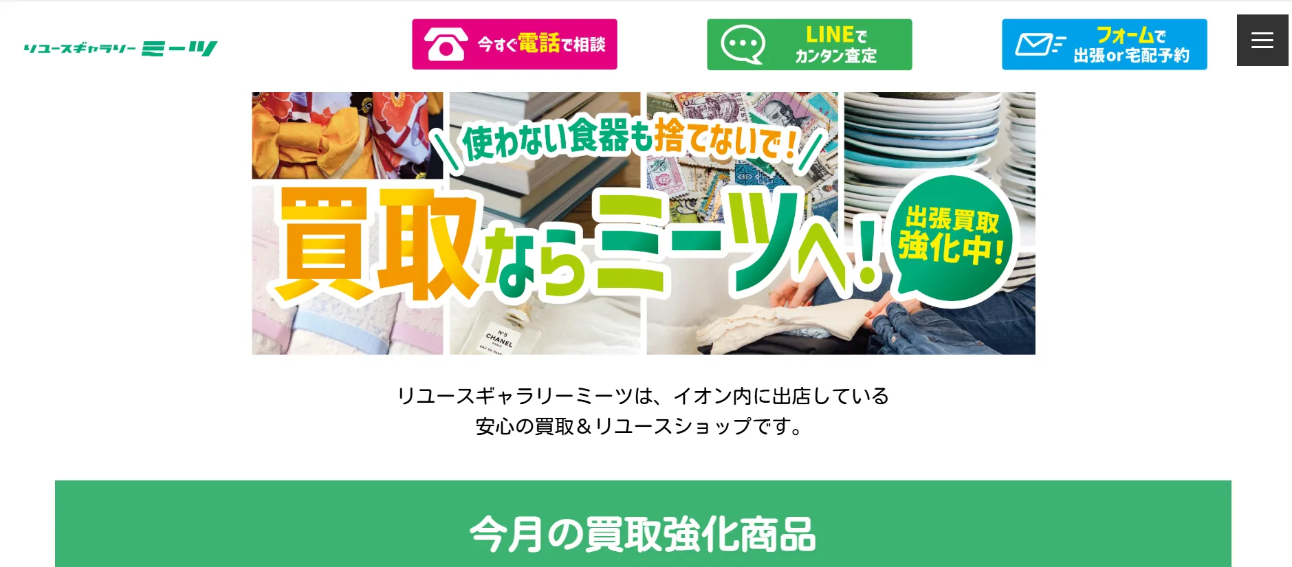 | 買取方法 | 店頭買取・出張買取・宅配買取 |
