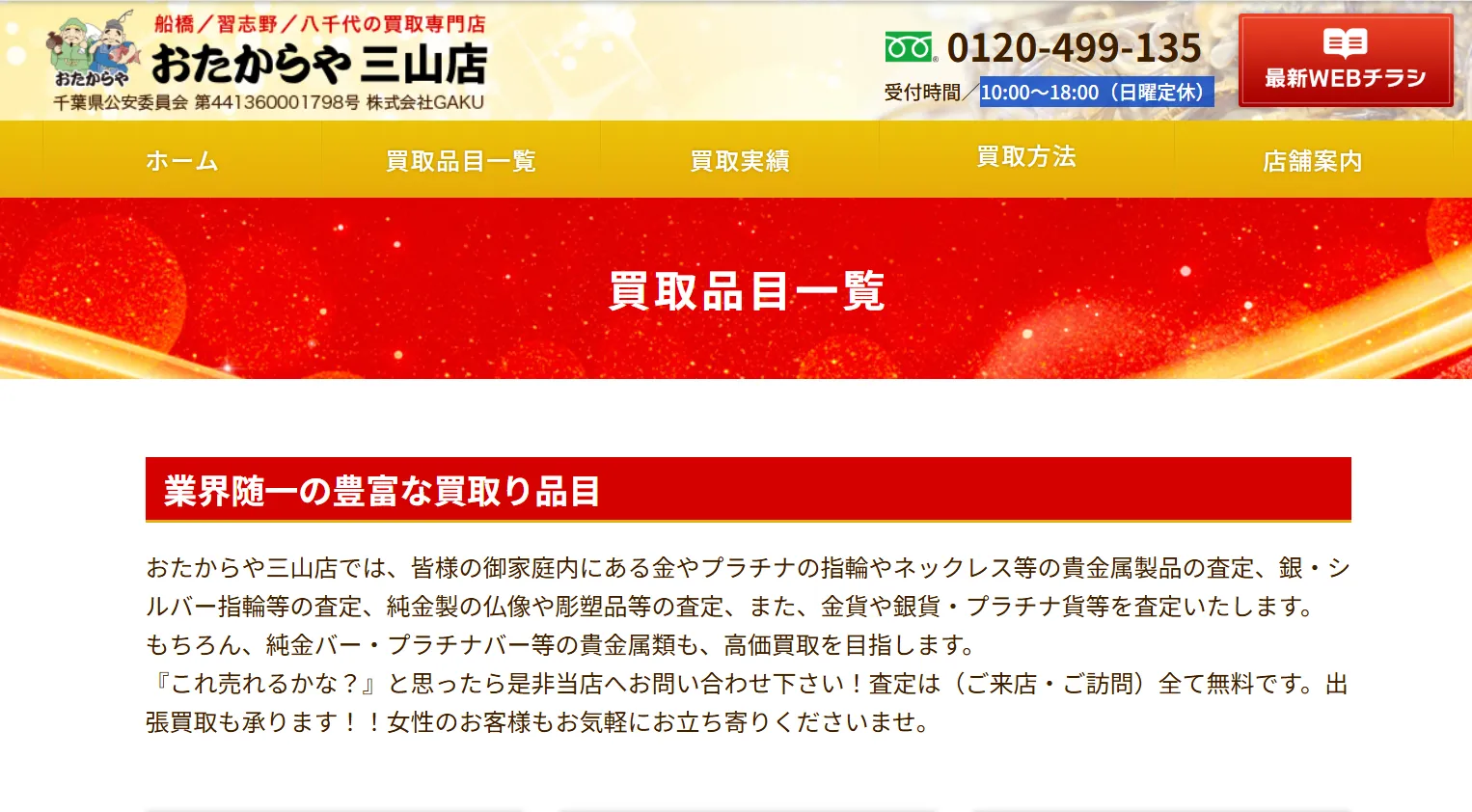 | 買取方法 | 店頭買取(千葉は店舗なし)・出張買取・宅配買取 |