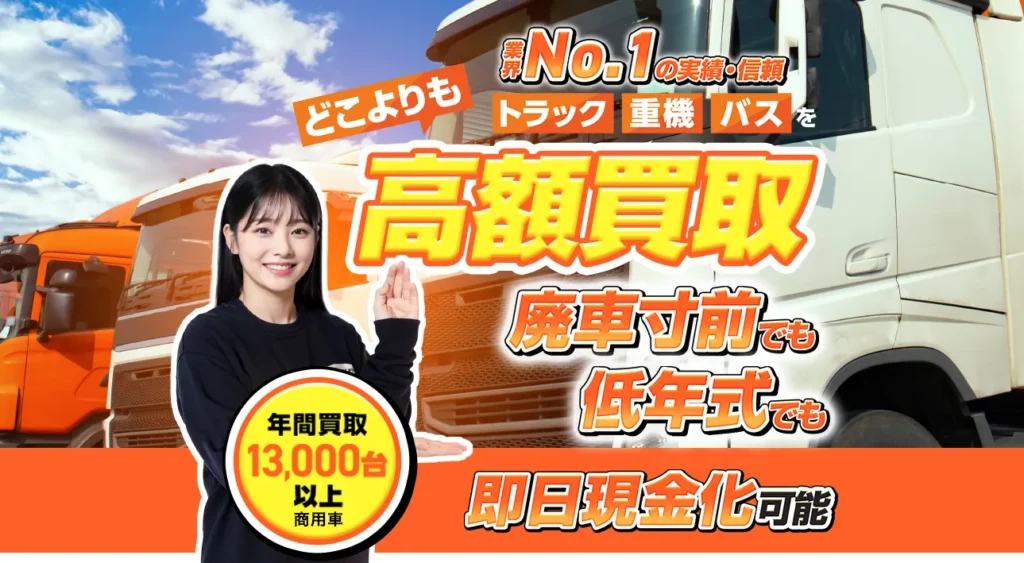 - 商用車専門の買取業者で、トラック・重機・バスまで幅広く対応