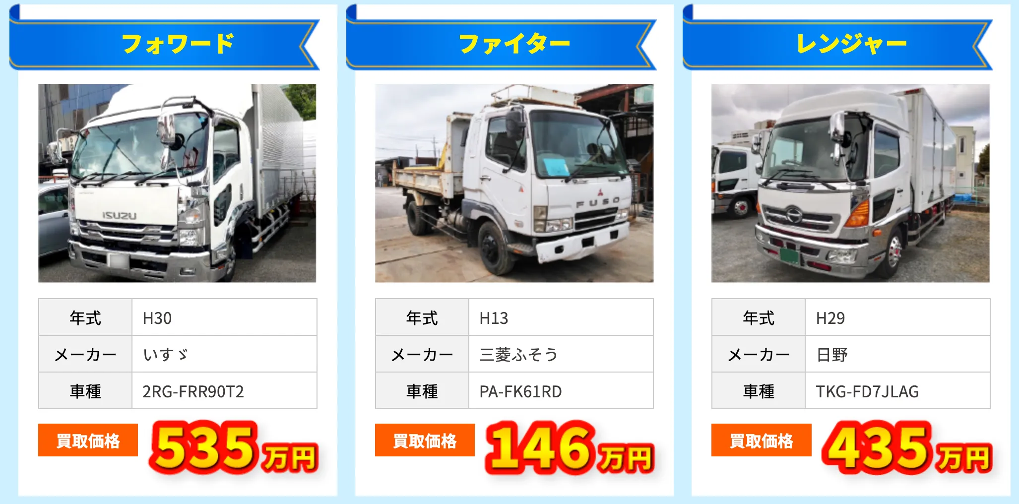 状態や整備履歴が重要になります。 - 年式が古いトラックでも買取してもらえますか?