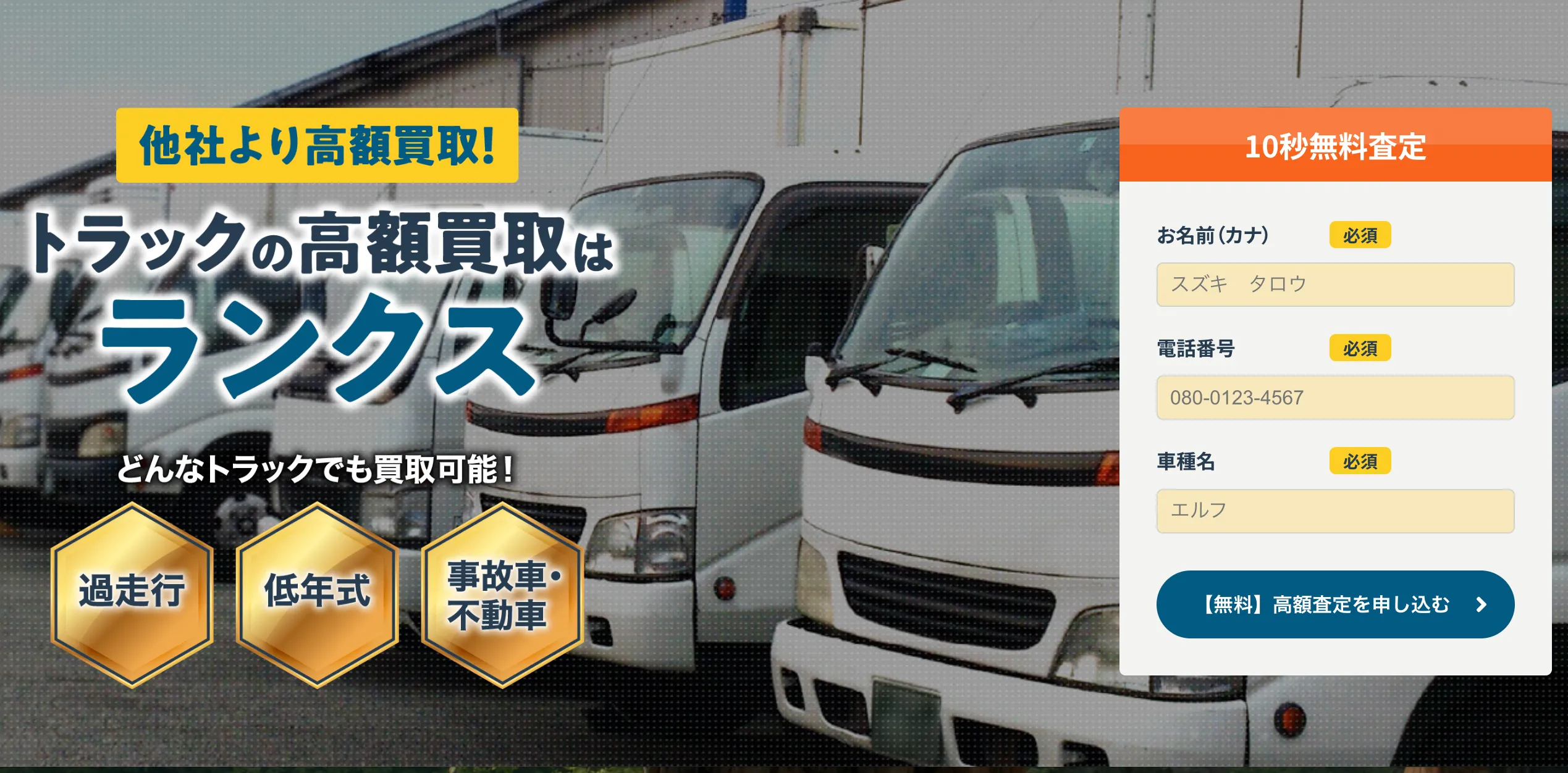 また、トラックファイブは不動車・事故車も買取可能としており、修理せずにそのまま査定依頼してOK。