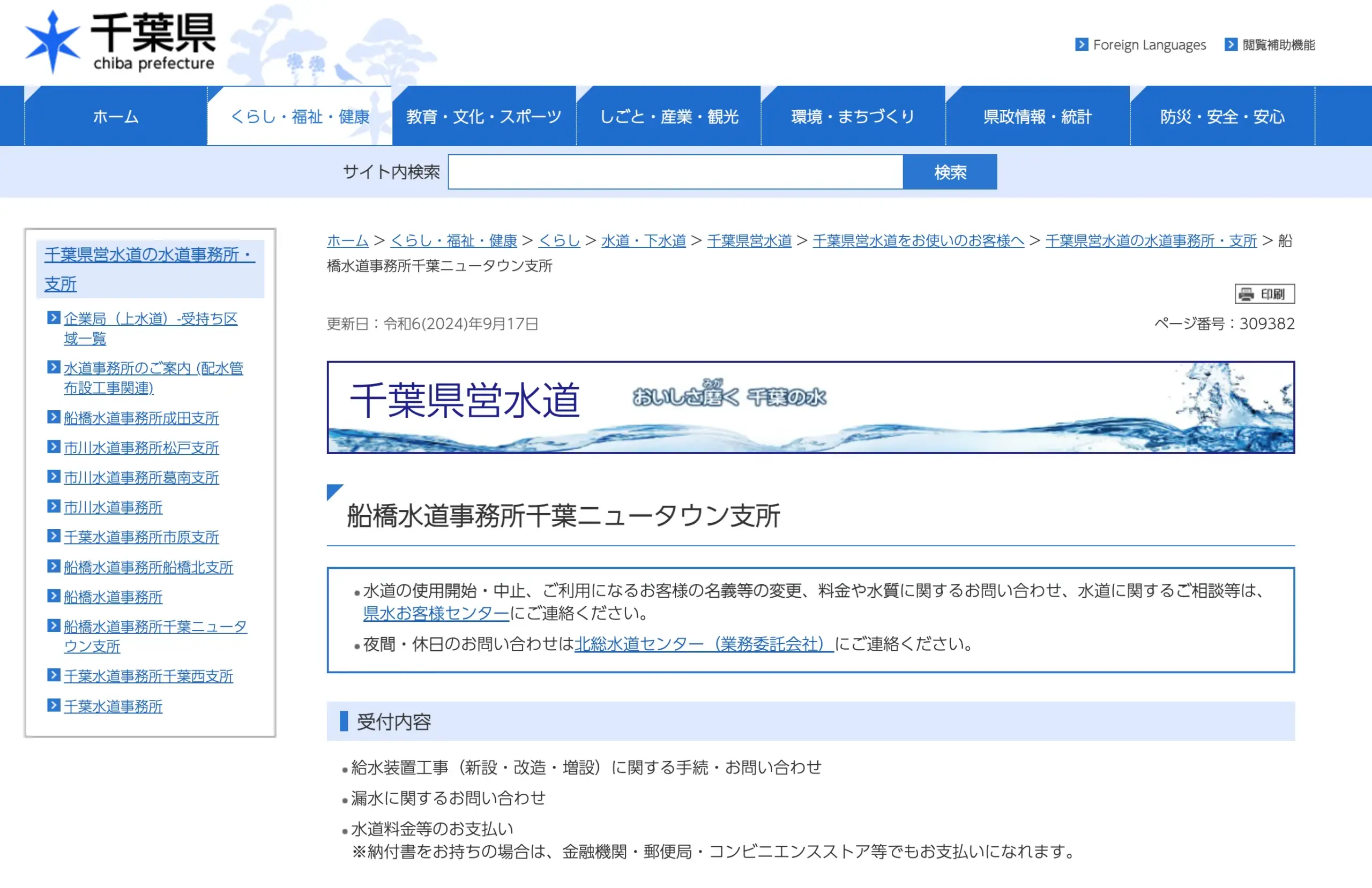 船橋水道事務所千葉ニュータウン支所の基本情報