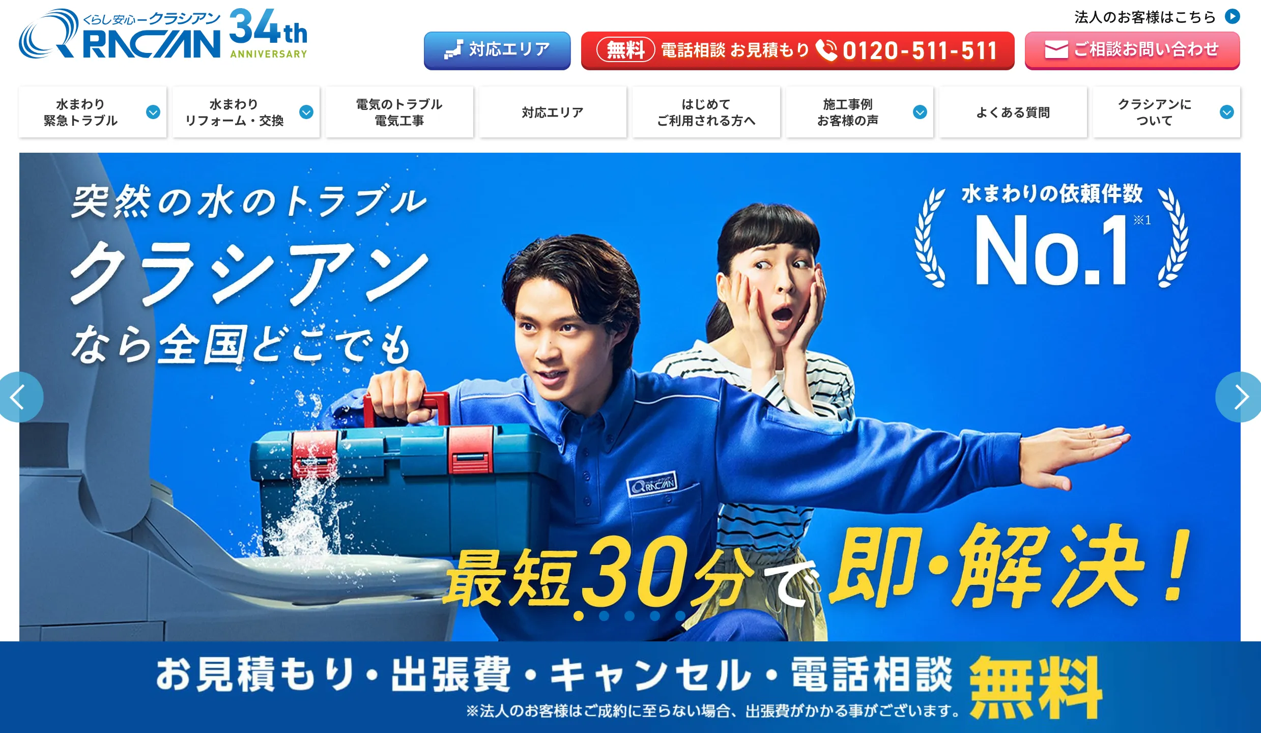 クラシアンは、水道局指定工事店のため幅広い業務を行うことができ、どんなトラブルでも対応可能です。