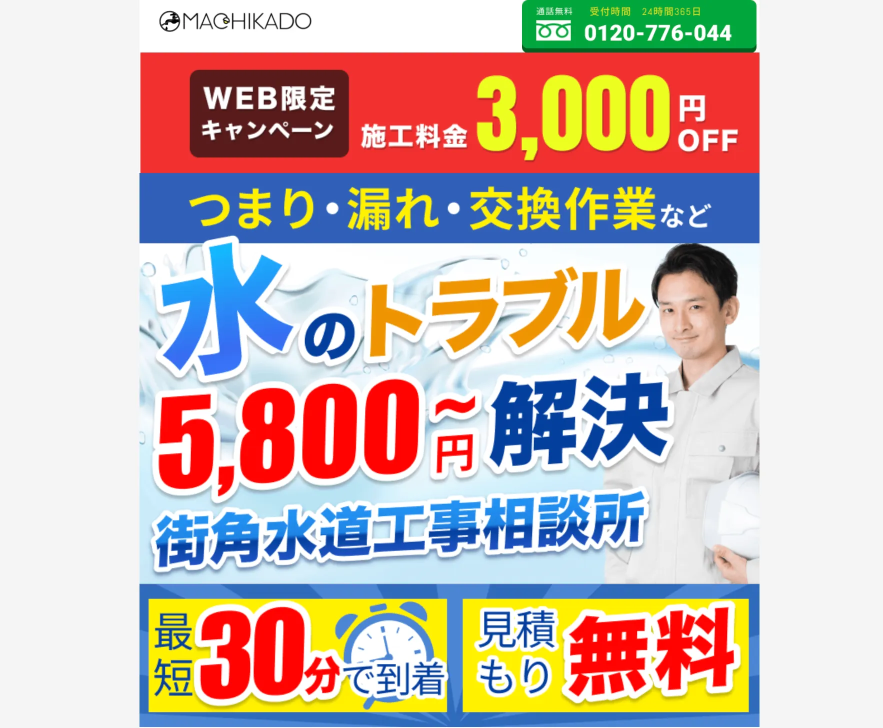 街角水道工事相談所はトイレ・お風呂・キッチンなどあらゆる水のトラブルに対応可能な水道工事専門業者です。