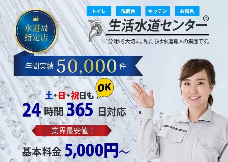 生活水道センターは、水道局指定店に指定された水道職人の集団です。