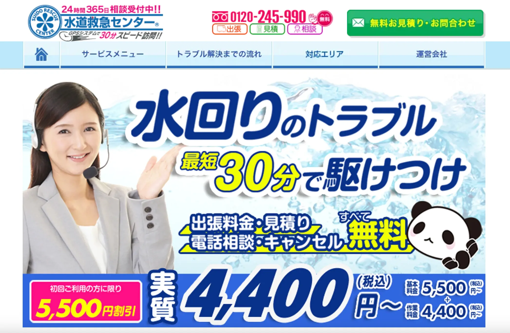 基本料金を設定していて明瞭会計なので安心してご利用できます。Web対応24時間365日受付、最短30分で到着